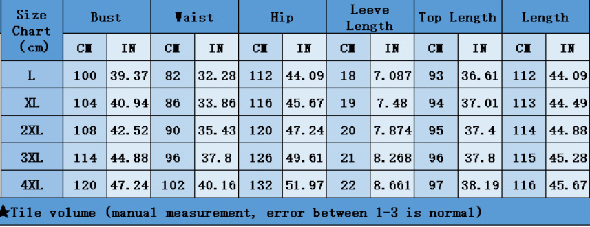 Sizes: L, XL, 2XL, 3XL, 4XL