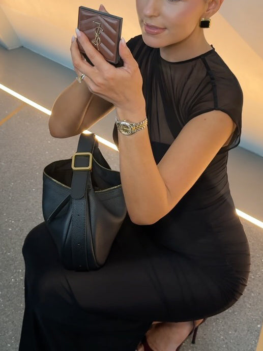 Black Mesh Overlay Bustier Bodycon Maxi Dress