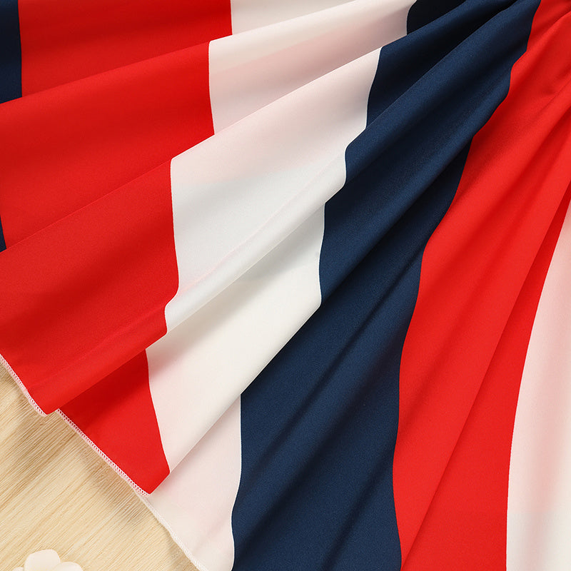 Toddler Girls' Independence Day Dress Red White & Blue Stripes And Stars Short Sleeve Twirl Dress 4th Of July